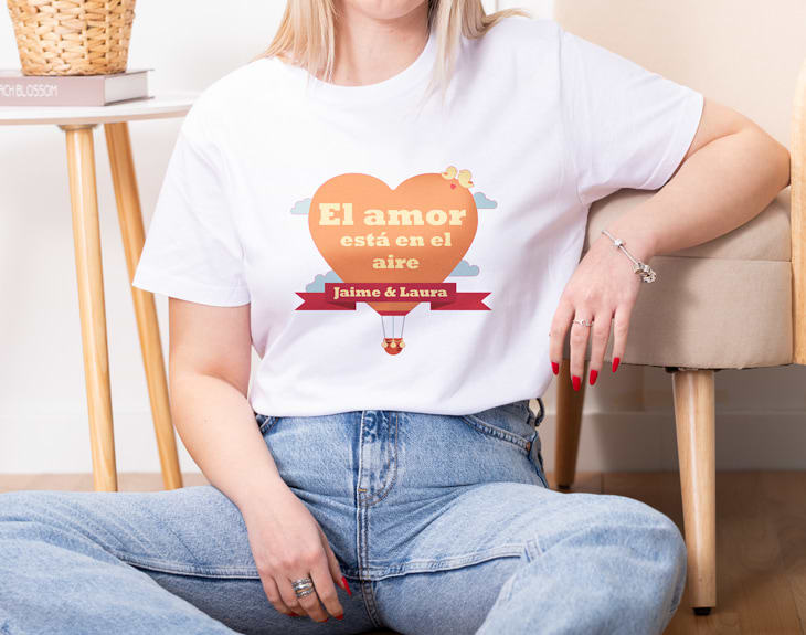 ¿Estás tan enamorado o enamorada que darías lo que fuera por ver sonreír a tu pareja? Esta camiseta personalizada te ayudará a preparar una sorpresa estupenda y llena de amor. Si vuestra relación se basa en la amistad, la pasión y la confianza, no hay nada más romántico que decirnos vuestros nombres y hacer única esta camiseta. Solo tendrás que decirnos los nombres o una frase importante para los dos. Demuestra que eres el mejor novio o la mejor novia del mundo y regálale una sorpresa que nunca se le olvidará. Material: - Algodón: 100% algodón. - Tacto algodón: 100% poliéster cotton touch. - Técnicas: 100% poliéster. Importante: Las medidas son aproximadas, pueden variar 5cm por encima o por debajo.