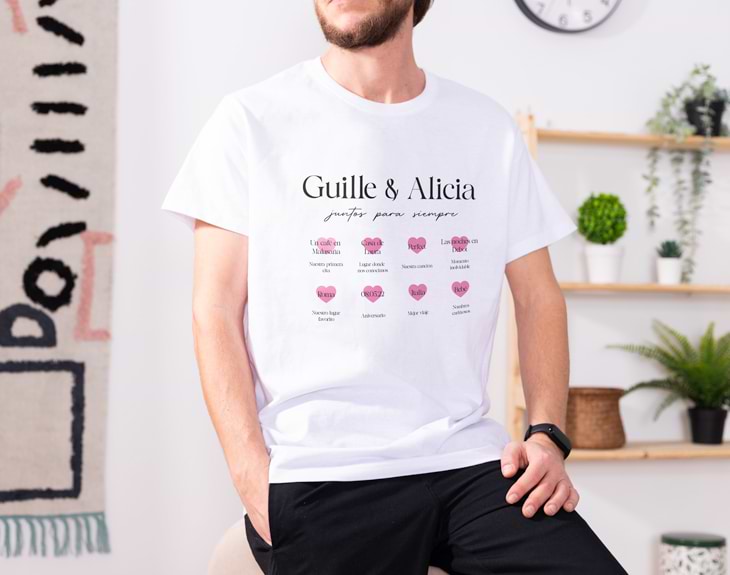 ¿Queréis que el día de vuestro aniversario esté lleno de amor y de felicidad?¡Entonces esta camiseta personalizada está hecha para vosotros! Y es que, imagínate aparecer con esta camiseta con vuestra foto preferida...¡Tu pareja se enamorará aún más de ti! Se trata de un detalle de lo más divertido y emotivo para comenzar uno de los días más importantes del año...¡El día en el que comenzasteis a vivir esta preciosa aventura juntos!¡Esto sin duda se merece una celebración por todo lo alto! Solamente tendrás que escoger esa fotografía que tan buenos recuerdos os trae y nosotros nos encargamos de insertarla dentro de este marco lleno de corazones. Puedes elegir esa de vuestra primera cita o la de aquel viaje tan increíble que hicisteis juntos. Material: - Algodón: 100% algodón. - Tacto algodón: 100% poliéster cotton touch. - Técnicas: 100% poliéster. Importante: Las medidas son aproximadas, pueden variar 5cm por encima o por debajo.