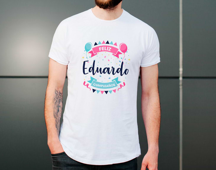 ¿Eres de los que se curran las fiestas de los cumpleaños? Esta es tu oportunidad para sorprender este año en la fiesta de cumpleaños de tu mejor amigo. Te proponemos un plan: personaliza esta camiseta con el nombre de tu amigo o el cumpleañero de la fiesta, y prepara una celebración de cumple súper original. Podrás personalizar las camisetas que quieras, y así ofrecer una a cada invitado. Será una de las sorpresas más bonitas que le habrán hecho nunca. ¡Conviértete en la mejor organizadora de cumpleaños de todos los tiempos! Material: - Algodón: 100% algodón. - Tacto algodón: 100% poliéster cotton touch. - Técnicas: 100% poliéster. Importante: Las medidas son aproximadas, pueden variar 5cm por encima o por debajo.