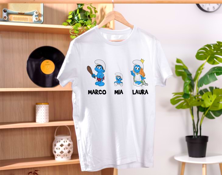 La camiseta personalizada perfecta para sorprender a todos tus amigos y familiares. ¿Cuántas veces habéis hablado de que los pitufos son los mejores dibujos animados del mundo? Este es el momento para personalizar la camiseta más original. Podrás elegir hasta 8 personajes y ponerles un nombre a cada uno. ¿A qué estás esperando? Material: - Algodón: 100% algodón - Tacto algodón: 100% poliéster cotton touch. Ligeramente translúcida. - Técnica: 100% poliéster (Colores solo disponibles en algodón) Importante: nuestro equipo de personalización se encargará de ajustar la distribución de los personajes en el producto en función de su tamaño para que se vean lo mejor posible. Importante: El color de los nombres variará según el color de la camiseta que elijas: Nombres blancos: - Camisetas azules de invierno y verano - Camisetas rojas de invierno y verano - Camisetas negras de invierno y verano - Camisetas rosas de invierno Nombres negros: - Camisetas blancas de invierno y verano - Camisetas grises de invierno y verano - Camisetas amarillas de verano - Camisetas verdes de verano - Camisetas rosas de verano Importante: Las medidas son aproximadas, pueden variar 5cm por encima o por debajo.
