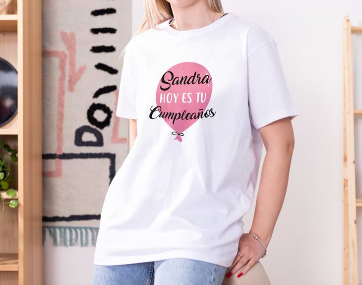 ¿Qué es lo primero que te viene a la cabeza cuando piensas en una fiesta de cumpleaños? ¡En un globo! Si es así, esta camiseta personalizada te va a encantar para regalársela a esa persona especial que va a cumplir años en breves. ¿Cuántas veces has pensado en organizarle una fiesta de cumple? Ahora es el momento. Viste a todos los invitados con esta camiseta, o al revés, haz que solo la protagonista la lleve puesta. Para personalizar la camiseta solo tendrás que darnos un nombre, y nosotros haremos el resto. Si crees que este detalle la hará ilusión, empieza a buscar más regalos originales para completar el regalo de cumpleaños más enorme del mundo. ¡Estás a punto de hacer que el día de su cumpleaños sea inolvidable! ¿Ya te has decidido? ¡Dale una sorpresa enorme con esta camiseta para cumpleaños! Material: - Algodón: 100% algodón. - Tacto algodón: 100% poliéster cotton touch. - Técnicas: 100% poliéster. Importante: Las medidas son aproximadas, pueden variar 5cm por encima o por debajo.