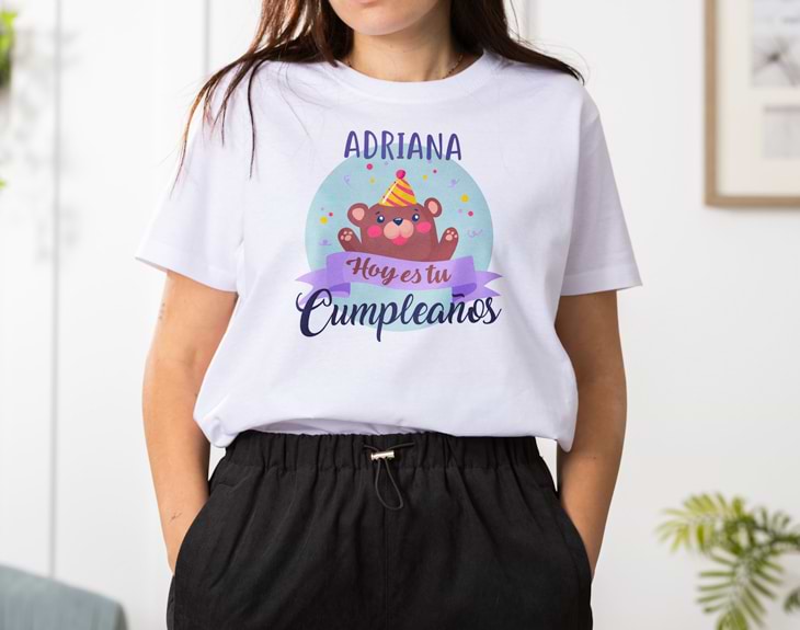 ¿Hoy es tu cumpleaños? ¿Es el día del cumpleaños de una persona especial para ti? ¿Vas a celebrar la fiesta más adelante? Estás a tiempo para hacer algo original. Esta camiseta personalizada te puede servir para que el protagonista del cumple pueda vestir con orgullo, diversión y mucha originalidad. Solo tendrás que darnos un nombre para que podamos diseñar la camiseta. Y es que las mejores personas son las que se merecen vivir los mejores momentos. Si el cumpleañero es tan achuchable como un osito, esta camiseta está diseñada para él. Anímate y haz que el osito fiestero salga a celebrar que hoy es el día de su cumpleaños. ¿Cuántas veces has pensado en organizar una fiesta enorme? ¡Este es el momento! Material: - Algodón: 100% algodón. - Tacto algodón: 100% poliéster cotton touch. - Técnicas: 100% poliéster. Importante: Las medidas son aproximadas, pueden variar 5cm por encima o por debajo.