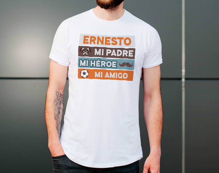 ¿Es el mejor padre del mundo? ¿También hace de héroe en los momentos más complicados? ¿Te vas con él de cañas o a pasar la tarde disfrutando de un gran amigo? Está claro que esta camiseta personalizada es perfecta el mejor papá del mundo. Si tienes la suerte de tener a un papá que es padre, amigo y héroe también, dinos su nombre y prepararemos este regalo para hacerlo exclusivo. Es una buena opción para sorprender a tu padre en el Día del Padre, su cumpleaños o un día especial que siempre celebres con él. No hay mejor regalo que disfrutar y compartir preciosos momentos con tu padre, héroe y amigo. ¡Aprovecha la oportunidad! Material: - Algodón: 100% algodón. - Tacto algodón: 100% poliéster cotton touch. - Técnicas: 100% poliéster. Importante: Las medidas son aproximadas, pueden variar 5cm por encima o por debajo.