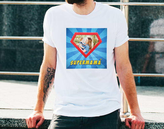 Una supermamá no la tiene cualquiera en casa. Si eres de esos afortunados que gozan de una vida con la mejor madre del mundo, este regalo es perfecto para darle una pequeña sorpresa en el Día de la Madre. Se trata de una camiseta personalizada con la foto que tú elijas para ponerla en el centro y regalársela a tu supermamá favorita. Material: - Algodón: 100% algodón. - Tacto algodón: 100% poliéster cotton touch. - Técnicas: 100% poliés Importante: Las medidas son aproximadas, pueden variar 5cm por encima o por debajo.