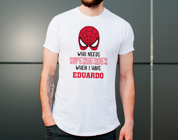 Inspirado en Spiderman, el diseño de este regalo original te permite escribir el nombre de la persona en la que estás pensando y darle una grata sorpresa. ¿Esa persona lucha por el bien de los demás? ¿Actúa en contra de las injusticias? Esta camiseta personalizada es perfecta para relacionar a Spiderman con tu amigo y darle una enorme sorpresa. Material: - Algodón: 100% algodón. - Tacto algodón: 100% poliéster cotton touch. - Técnicas: 100% poliéster Importante: Las medidas son aproximadas, pueden variar 5cm por encima o por debajo.