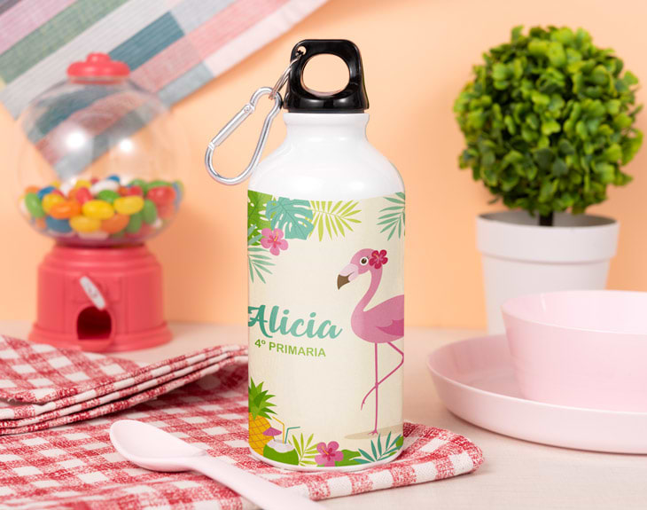 La cantimplora personalizada que tu pequeña estaba esperando. Nuestro diseño más colorido, divertido y tropical es perfecto para esas niñas presumidas que están al día de todas las tendencias. Si a tu hija le encanta seguir la moda, esta cantimplora le alucinará. Y es que...¿Hay algún animal más famoso que los flamencos? Están por todos los lados y todo el mundo quiere algo con un dibujo de estas aves tan adorables. Un regalo original que tu pequeña no espera y que le dejará sin palabras. ¡Le encantará!