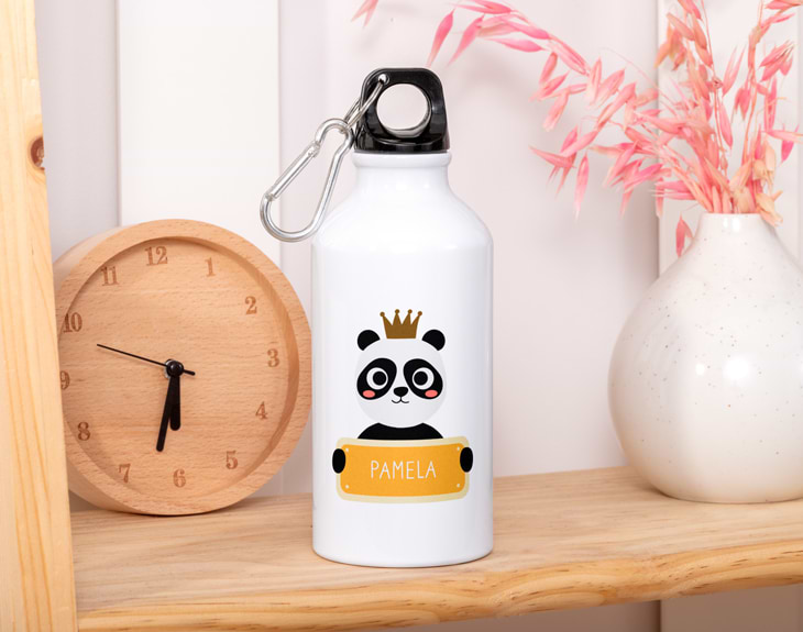 Los pandas son los animales más amorosos que pueden existir. Son achuchables, peludos, y de lo más monos gracias a esas manchas blancas y negras. ¿Cómo no puede ser nuestro animal favorito? Seguro que si le preguntas al más pequeño de la casa cuál es su animal preferido, uno de esos será el oso panda. ¡Haz que siempre le acompañe en su día a día gracias a esta cantimplora personalizada! Para que las excursiones escolares sean aún más memorables contamos con esta cantimplora de aluminio con diseño de panda, para que tu hijo pueda hidratarse siempre junto a su animal preferido. Este fabuloso diseño irá en una cantimplora hecha de aluminio, de 17 centímetros de alto y con una capacidad de 400 mililitros. ¡Su tapa con mosquetón incluido hará que sea todavía más fácil llevarla a todas partes! Y es que un regalo original para la vuelta al cole como este no solo le será de gran ayuda en las salidas escolares. ¡También podrá disfrutarla en clase! Lo único que queda para que este regalo sea aún más especial es el nombre de ese pequeño amante de los pandas. Una vez añadas el producto al carrito, lo único que tendrás que hacer es entrar en el área de personalización (donde encontraras el diseño de este monísimo panda) y escribir el nombre justo debajo. ¡Será un detallazo para la vuelta a la rutina!