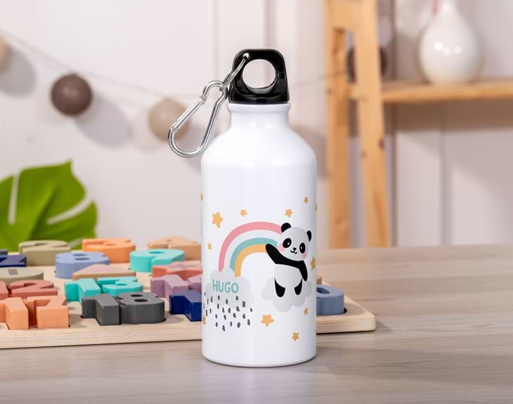 La vuelta a la rutina no es fácil para nadie y menos para los más peques, ya sea por la vuelta al cole o por las actividades extraescolares que practiquen. Vamos a intentar facilitárselo lo máximo posible con esta cantimplora personalizada con diseño de panda mágico que les encantará y será su mejor aliado en esos días que parecen interminables. No importa la estación del año ni el tiempo que haga, ya que nuestros niños deben estar bien hidratados siempre ¡gracias a esta cantimplora es más sencillo que nunca estar seguros de esto! Esta bonita cantimplora de aluminio esta pensada para facilitarle la vida a los más peques dado que es muy manejable. La podrás llevar contigo a cualquier parte ya que mide 17 centímetros de altura y tiene una capacidad de 400 mililitros. Además viene incorporado un mosquetón, la podrá llevar guardada en la mochila o colgada en ésta, reduciendo la posibilidad de perdida y haciéndosele así más fácil beber agua de camino a casa. Este regalo tan original para la vuelta al cole, a parte de su bonito diseño, puede ser personalizado con el nombre, apellido o apodo que quieras. Tan solo tendrás que escribir el nombre en el diseño que encontrarás en el apartado de personalización. ¡Le encantará ver su nombre junto al oso panda, estará seguro de que nadie cogerá su cantimplora por error!