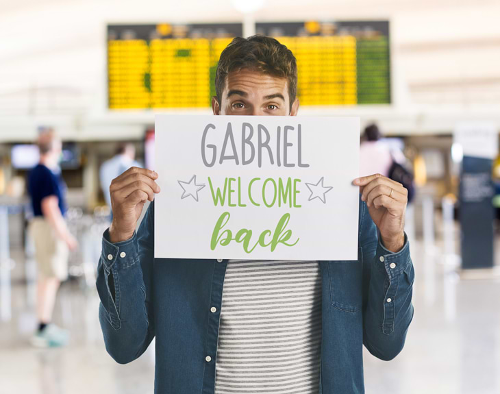 Hay momentos llenos de emoción y alegría, y los reencuentros son, sin duda, uno de ellos. Después de tanto tiempo, la llegada de ese ser querido al aeropuerto está cargada de ilusión… ¡y no hay mejor manera de recibirle que con un cartel de bienvenida personalizado! Es un detalle original y muy especial que seguro emocionará, ya sea para recibir a tu familia, amigos, pareja o a esa persona a la que llevas tiempo esperando. Lo mejor de todo es que podrás personalizarlo con el mensaje que tú elijas. ¡La sorpresa está garantizada! ¿Cómo personalizar tu cartel para el aeropuerto? Muy fácil: añade el producto al carrito y accede al área de personalización. Escribe el mensaje que quieras y nosotros nos encargamos del resto. ¡Tendrás un regalo original de bienvenida que no olvidarán! Importante: El color del marco puede variar según stock. Importante: Las opciones de lámina gigante y grande no incluyen marco. Solo tiene marco la opción de A4. Podrás elegir esta lámina en el tamaño que quieras: A4, grande (48 x 33 cm) o gigante (85 x 60 cm). Importante: Si escoges la opción "versión digital" te enviaremos el diseño por mail en alta resolución. De esta manera, tendrá la calidad necesaria para que puedas imprimirla en cualquier formato. En el formulario de entrega tendrás que seleccionar la opción "Recibir por Email para ahorrar los gastos de envío".