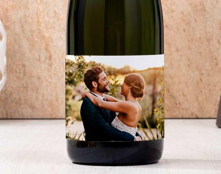 Botella de cava personalizada, en la que la etiqueta tiene la foto, el texto o el diseño que tú elijas. Perfecta para que te acompañe en una celebración inolvidable. Utilizamos como base el exquisito cava brut nature Jaume Serra.