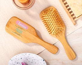 ¿Quién es esa persona que se arregla siempre tanto para ti? Aquella a la que, precisamente, te da igual como esté tu pelo. ¡La vas a querer igual! Seguro que va a seguir haciéndolo así que, para que la próxima te tenga aún más presente, emociona a esa persona con su propio cepillo de bambú personalizado. ¡Con una romántica dedicatoria y su nombre escrito en la parte trasera! Que todo el mundo sepa todo el amor que tiene contigo a su lado y lo mucho que la quieres. Creemos que la mejor idea de regalo romántico para aniversario o cumpleaños es un complemento tan útil como bonito que le pueda acompañar en el día a día. Por ello, este cepillo para el pelo con diseño de amor no faltará nunca en su neceser. Además de escribir su nombre o apodo cariñoso que siempre utilizas, también puedes escoger el color del diseño de corazones: azul, amarillo, naranja... ¡Sorpréndela con su color favorito! Además de ser un regalo romántico original, también es un complemento práctico para el pelo. Su precioso diseño de bambú le da una preciosa apariencia. Además, las cerdas están dispuestas para cuidar al máximo el pelo evitando la rotura. ¡Ideal para todo tipo de cabellos largos o medianos! Medidas: 20 x 6,5 cm.