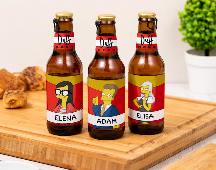 ¿Estás con Homer Simpson si hablamos de cervezas favoritas? ¿Para ti la Duff es una cerveza súper especial? No importa por qué lo sea: eres fan de la serie y no puedes vivir con una Duff, realmente te gusta el sabor, o piensas más en Duff como empresa. No importa por qué, pero seguro que la Duff es una cerveza especial para ti. Si es así, estas cervezas personalizadas son perfectas para sorprenderte a ti mismo o a esa persona a la que le encanta la Duff. Ahora puedes personalizar las cervezas con un personaje Simpson, y ponerles nombre. ¡Son las seis cervezas más originales del mundo! El regalo se constituye como uno de los packs de cervezas personalizado más originales que puedes encontrar. Aprovecha un momento especial en el que quieras reunir a tu familia o amigos, y llena de alegría una de las ocasiones más especiales de tu vida. Para elaborar estos botellines utilizamos cerveza dorada San Miguel Especial porque nos encanta su ligera espuma y su toque de sabor afrutado.