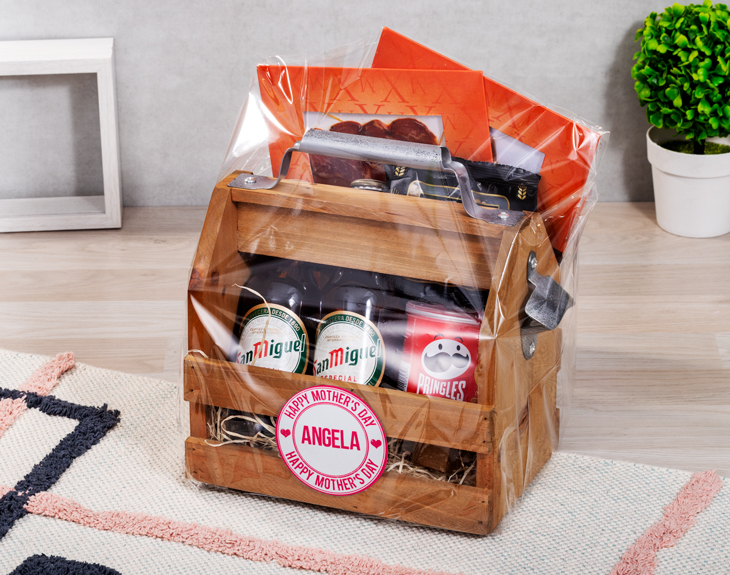 ¿Qué sería del mundo sin las madres? Siempre atentas, cuidando a su familia y dispuestas a darlo cuando haga falta. Por eso, el Día de la Madre es el momento perfecto para sorprenderla con esta cesta de picoteo personalizada que seguro que le va a encantar. Es el detalle perfecto para cualquier ocasión, porque mamá se merece siempre lo mejor. Esta original cesta no dejará indiferente a nadie porque lo mejor está en su interior, ya que incluye: dos cervezas San Miguel, Jamón de Jabugo, Lomo Ibérico de Jabugo, un bote de Pringles Original y un paquete de picos Obando. Vamos, que esta cesta es todo un picoteo para que mamá pueda disfrutarlo cuando quiera y con quien quiera. ¡Será el mejor regalo para cualquier ocasión! Y para hacer que este regalo sea el más especial del mundo, vas a poder personalizar esta caja de madera con una pegatina única. Entra en el área de personalización y escribe el nombre de mamá para que sepa que este regalo es exclusivamente para ella y se quede sin palabras al recibirlo. ¡Es lo más! Medidas de la cesta: 15 x 19,5 x 22 cm. Material: madera.
