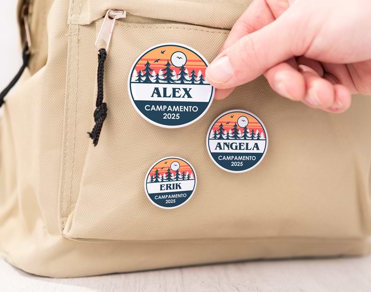 No hay nada que mole más en verano que irse de campamento. Es el momento del año donde nos vamos con nuestros amigos al campo a pasar unos días súper divertidos e inolvidables. Por eso, no podéis olvidaros de llevar vuestras propias chapas personalizadas para estar bien identificados todo el tiempo. ¡Son lo más! Pero para que estas originales chapas sean la envidia de todo el mundo, vas a poder personalizarlas como tú quieras. Eso quiere decir, que podrás escribir lo que se te ocurra junto a este campestre diseño. Y es que no hay mejor momento y lugar que un campamento para ponerte una chapa como esta y disfrutar. Además, gracias a nuestro selector de cantidad, vas a poder elegir cuántas unidades quieres y cómo vas a personalizarlas. Para terminar, solo tienes que entrar en nuestro diseñador y escribir el texto que quieras, nosotros nos encargamos de que todo quede perfecto y listo para usar.