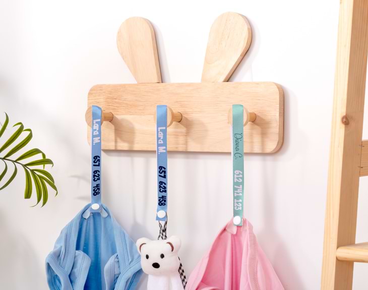 Esta vuelta al cole puede ser diferente gracias a nuestras cintas personalizadas para colgar ropa. Son el complemento perfecto para marcar la ropa infantil en el colegio o en la guardería, y encontrar fácilmente chaquetas, babis, bolsas, mochilas y todo lo que tu peque necesita para su día a día. Podrás personalizar por una cara con el nombre de tu hijo/a, un número de teléfono, el curso escolar o cualquier texto que desees. Además, puedes escoger el color de fondo de la cinta, ideal para combinar con la ropa o la mochila de la guardería o el cole. Elige entre diferentes tipos de cierre: suelta para coser o con corchete de quita y pon. Se venden en packs de cinco unidades y, sin duda, son un elemento práctico y original para acompañar a tu hijo o hija en esta emocionante vuelta al cole. Personalizar estas cintas para ropa de colegio y guarderías es muy sencillo. Añade el producto que desees al carrito y luego accede al área de personalización. Allí podrás ver la plantilla de la cinta y añadir lo que quieras: texto, colores, fondos... ¡La parte más divertida es diseñarlas junto a tu peque! Medidas aproximadas: 35 cm (ancho) x 1,5 cm (alto).