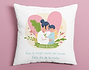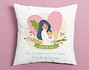 • Cojín personalizado de 40 cm x 40 cm. • Relleno incluido. • Tarjeta recordatoria.