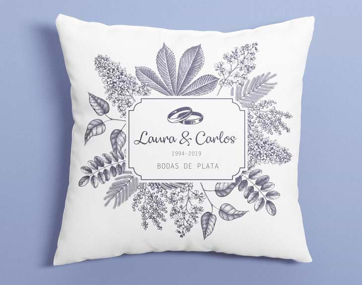 ¿25 años de casados y os queréis tanto como el primer día? Entonces el cojín Bodas de Plata Floral es lo que necesitas para sorprender al gran amor de tu vida en vuestra fecha más especial. Un regalo elegante y personalizado con vuestros nombres, para que vuestro romántico aniversario quede registrado para toda la vida. No hay nada más cariñoso y dulce que sorprender a nuestra pareja con un tierno cojín pero, si además lo combinamos con un diseño tan bonito y estiloso como el de nuestro cojín Bodas de Plata Floral, el éxito del regalo lo tenemos 100% garantizado. Cumplir 25 años de casado no es algo que se consiga todos los días. Por eso, en este aniversario tan especial, no te la juegues y triunfa con este precioso cojín personalizado solo para vosotros. ¡Seguro que se morirá de amor cuando lo vea!