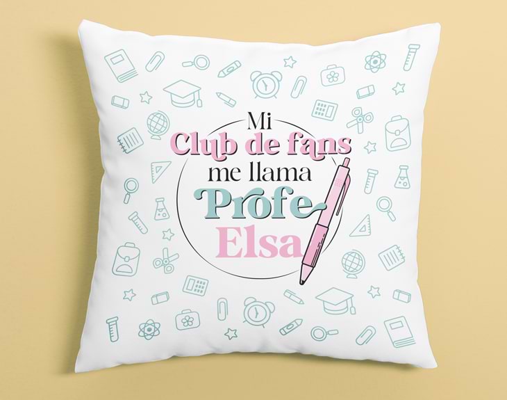 ¡El curso llega a su fin! Ahora tocan los exámenes finales y las despedidas. Si os da mucha pena despediros de vuestro profe favorito, ese profe que os ha hecho disfrutar realmente de su asignatura. Está claro que tenéis que hacerle un regalo para agradecerle todo su esfuerzo y para demostrarle que de verdad os han gustado mucho sus clases. Nuestro cojín personalizado “Club de fans del profe” es el detalle perfecto. Es una preciosa forma de agradecerle todo su esfuerzo, cariño y dedicación. Y es que, un profe tiene un gran poder sobre sus alumnos, puede hacer que su asignatura te parezca un rollo o sea súper interesante. Si vuestro profe es el mejor de todos y sois unos fans de sus clases, tenéis que hacerle este regalo tan guay. Le hará muchísima ilusión y nunca se olvidará de su clase favorita. Si queréis completar este regalo, puedes añadir una taza personalizada a juego con este cojín. Personalizar este cojín tan chulo es súper sencillo. El primer paso a seguir consiste en añadir el producto al área de personalización. Y una vez ahí, ya podéis escribir el nombre de vuestro profe favorito. Nosotros nos encargamos de todo lo demás. Pronto estará perfecto y listo para regalar. ¡El mejor regalo para profes!