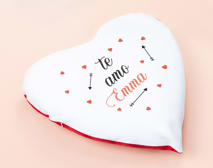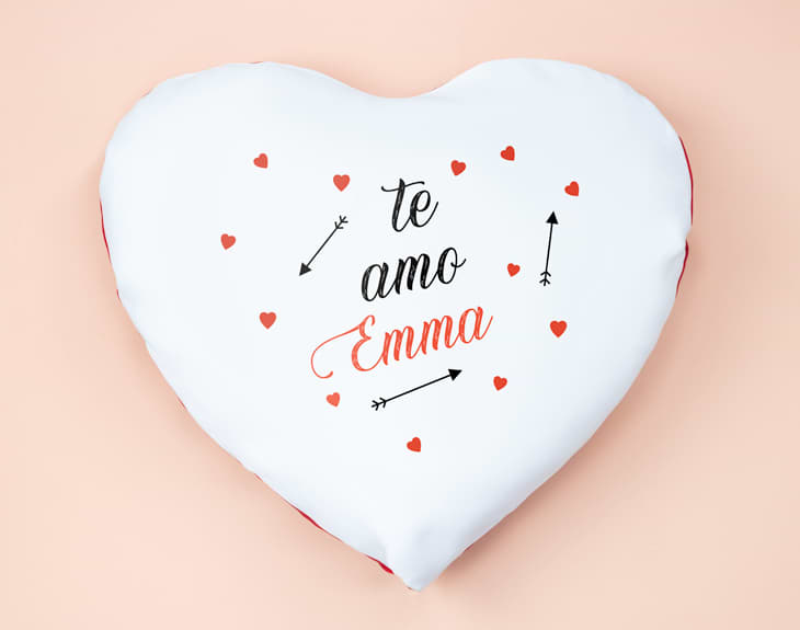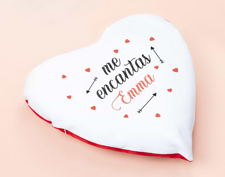 • Cojín Corazón personalizado de 35cm x 30cm • Relleno incluido • Tarjeta recordatoria.