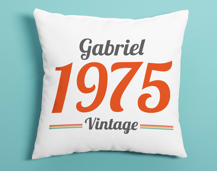 ¿Tú también conoces a esa persona que adora todo lo que tiene que ver con lo vintage? Si se acerca su cumpleaños y estás pensando en tener un detalle con esa persona tan especial, tenemos el regalo perfecto. Se trata de nuestro cojín vintage personalizado. Este cojín quedará genial con cualquier decoración, dándole un toque más personal y retro a la estancia. Y lo mejor, es que es personalizable, podrás escribir su nombre y la fecha de su cumpleaños, por ejemplo, así le quedará un recuerdo muy bonito de esta fecha tan especial. Personalizar este cojín vintage es súper sencillo. El primer paso a seguir consiste en añadir el producto al carrito y entrar al área de personalización. Una vez ahí, escribes el nombre de esa persona tan especial, su fecha de nacimiento o lo que tú quieras. Nosotros nos encargamos de todo lo demás. Pronto quedará perfecta y lista para regalar. ¡Triunfarás seguro!