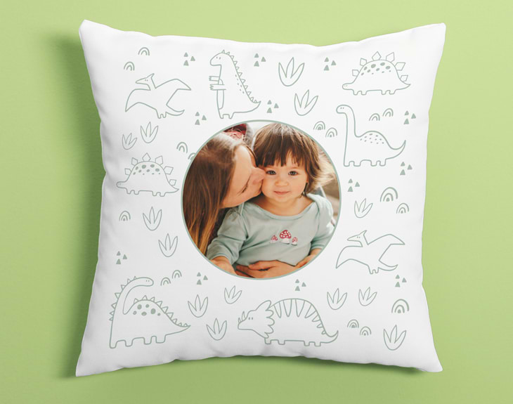 La energía que tienen los niños parece que no se agota nunca, por mucho que hagan durante el día siempre tienen ganas de más. Pero a veces, es necesario descansar tanto mental como físicamente y seguro que les encantaría hacerlo sobre su propio cojín personalizado. Lleno de dinosaurios de color verde pastel, este diseño está pensado especialmente para los más pequeños de la casa. Tener un cojín siempre a mano para poder descansar es fundamental y los niños lo necesitarán después de sus largas e intensas jornadas diarias. Si tus hijos son unos auténticos apasionados de los dinosaurios y se saben todas las especies que existen, este cojín es el regalo perfecto. Este original cojín puede convertirse en el regalo perfecto para sorprender a los niños el día de su cumpleaños o en alguna celebración especial. Es una opción diferente si no sabes que regalarle al peque de la casa, porque seguro que le hace mucha ilusión recibir un cojín con su nombre o una foto suya rodeada de siluetas de sus dinosaurios favoritos. No habrá momento en el no quiera usar este cojín para dormir, jugar a la consola, leer o apoyar su espalda cuando esté sentado haciendo deberes. ¡Sirve para todo! Pero antes de que termines de leer, recuerda que tienes que personalizar este cojín para que sea el más especial del mundo. Podrás elegir cómo quieres personalizarlo porque tienes dos opciones: añadir solo un nombre o solo una foto. ¡Tú decides qué opción te gusta más! A los pequeños de la casa les encantará tener su propio cojín de dinosaurios sobre el que descansar siempre que lo necesiten. ¡Será su cojín favorito! Pero si quieres, puedes elegir el pack que incluye cojín y taza personalizados. Podrás llevarte ambos productos y personalizarlos como tú quieras, con el mismo nombre y que sea un regalo para el mismo niño o niña o con nombres diferentes y así poder hacer dos regalos. ¡Tú decides! Medidas: 40 x 40 cm.