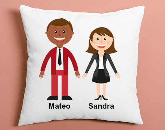 -Podrás diseñar tu propio cojín con 150 opciones disponibles. -En el cojín podrás poner máximo 8 personajes. Importante: a partir de 6 personajes, se distribuyen en dos filas. Es decir: - Familia de 6 personajes: 3 en la fila superior, y 3 en la inferior. - Familia de 7 personajes: 4 en la fila superior, y 3 en la inferior. - Familia de 8 personajes: 4 en la fila superior, y 4 en la inferior.