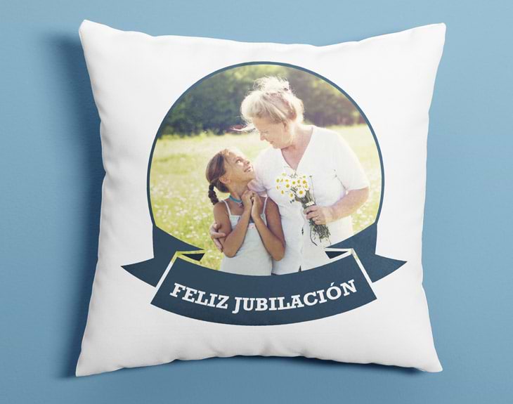 ¿Se acerca la jubilación de alguno de tus padres o de un compañero de trabajo muy querido? Si es así, tenemos el regalo perfecto con el que podrás sorprenderles: el cojín personalizado Feliz jubilación. Un regalo de lo más emotivo con el que seguro le sacarás una sonrisa en su día más especial. Escoge la mejor foto que tengas de él, un recuerdo bonito de vuestro tiempo juntos o una foto de todos sus compis de trabajo, y crea un diseño de lo más especial con el que dejarle boquiabierto. Este cojín personalizado es el mejor de los recuerdos para celebrar el fin de una larga vida de trabajo y responsabilidades. ¡Por fin llega el momento del esperado descanso! Y nada mejor que recordar este día tan especial que con un tierno y achuchable cojín personalizado solo para él/ella. ¡Le encantará!