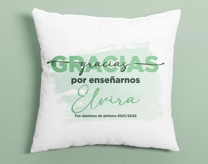 ¿Te acuerdas de tu época escolar? Puede que haya pasado muchísimo tiempo, pero tendrás grandes recuerdos de esa etapa de tu vida. Tus mejores amigos de clase, esas lecciones de Educación Física que te dejaban agotado, las clases de flauta... ¡tendrás millones de instantes en tu memoria! Sin embargo, estamos seguros de que, lo mejor de esos años, fue tu profesor favorito. Ese profe que te ayudó cuando necesitabas aprender a dividir, cuando no conseguías conjugar el pretérito pluscuamperfecto del verbo ir, o cuando no te salía las circunferencias con el compás. Todos hemos tenido un profesor como ese, y está claro que tus hijos también lo tienen. ¿Quieres recompensar al maestro de tus hijos por ser tan bueno? Este es el momento: este cojín personalizado será el encargado de darle la enhorabuena por su estupendo trabajo. Si no puedes parar de agradecerle todo su trabajo durante este complicado año, el final de curso es el mejor momento para hacerle una sorpresa que no olvidará. Podrás personalizar este regalo original para profesores con el texto que desees, ya sea su nombre, la asignatura que imparte, o el nombre de la clase. ¡Haz que sus momentos de descanso sean mucho más relajantes gracias a este cojín!