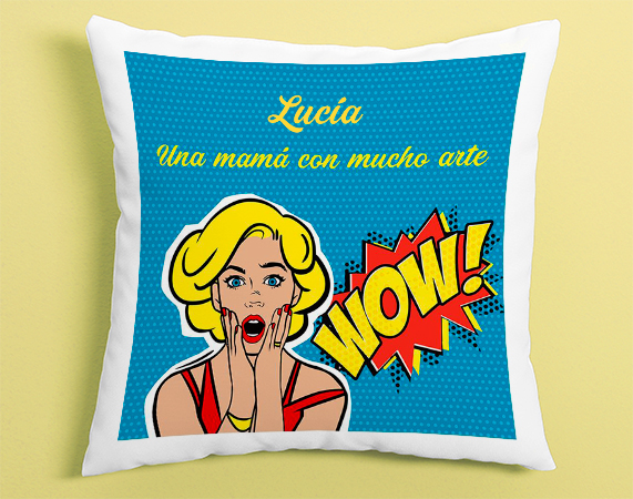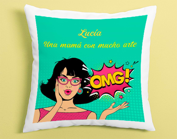 Con nuestro cojín para madres pop art, podrás sorprender a tu mamá y dejarla con la boca abierta. Es un diseño atrevido y divertido, perfecto para madres llenas de vida. Durante el proceso de pago (antes de pagar) se te preguntará el nombre para preparar el cojín.