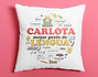 • Cojín personalizado de 40cm x 40cm. • Relleno incluido. • Tarjeta recordatoria.