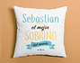 • Cojín personalizado de 40cm x 40cm • Relleno incluido. • Tarjeta recordatoria.