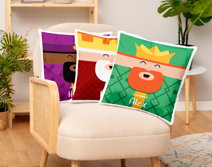 ¿Ya estás preparando la decoración navideña? Entonces no puede faltar en casa este cojín navideño personalizado, un accesorio perfecto para decorar durante las fiestas y darle ese toque cálido y colorido, muy propio de la Navidad. Además, con sus diseños de los Reyes Magos, es simplemente lo más guay y suavecito del mundo. Según la tradición cristiana, los tres Reyes Magos "Melchor, Gaspar y Baltasar" llevaron regalos al niño Jesús: oro, incienso y mirra. Con este cojín personalizado Reyes Magos podrás llevar esa magia directamente a tu hogar. Elige el Rey que más te guste y personalízalo con el nombre que quieras. Es perfecto como regalo de Navidad para esa familia y esos seres que tanto amas, o para darle un toque festivo a tu salón, a tu habitación, o a ese rinconcito especial junto al árbol de Navidad que haces único en estas fechas. Es un detalle precioso que no solo decora, sino que también es cómodo y muy fácil de lavar. Además, te acompañará todo el año o en las próximas fiestas navideñas. Personalizarlo es muy sencillo: solo tienes que añadir al carrito el tamaño de cojín que mejor se adapte a tu regalo, seleccionar el diseño de Rey Mago que más te guste y escribir el nombre o una frase corta que quieras. Y listo así podrás celebrar esta Navidad y las que vengan con el regalo original más suave, colorido y estupendo. Porque, seamos sinceros, todos amamos a los Reyes Magos y si llegan el 6 de enero, aún más.
