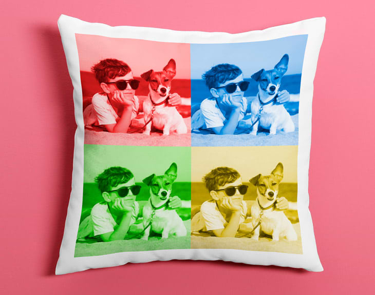 Decora tu casa con el mejor y más colorido estilo posbile. Si tienes una foto muy chula, tanto que quieres tenerla como un complemento más del hogar, ¡imagínate lo genial que quedará en este molón cojín personalizado! Sube la imagen que quieras y le aplicaremos el filtro de pop art al más puro estilo Andy Warhol, tal y como aparece en el modelo. Este regalo original es la manera más divertida de enmarcar ese momento tan especial. En lugar de imprimir solamente la foto y ponerla en un marco, ten siempre a mano ese recuerdo tan especial cuando estés tumbado en el sofá o te vayas a dormir. ¡Nuestro cojín personalizado tan colorido te transmitirá de nuevo las emociones tan vivas que sentías en esa imagen! ¿Te gusta tanto el diseño que quieres uno también para ti? ¿O tienes dos fotos y no sabes por cuál decidirte? ¡Llévate el pack de cojín y taza por apenas 4€ más! Puedes personalizar cada uno con su propia imagen. Así, tanto cuando te despiertes con un buen café como cuando te vayas a dormir cómodamente, lo harás reviviendo de nuevo esos recuerdos tan especiales. Importante: si eliges la opción que incluye taza, esta será de cerámica.