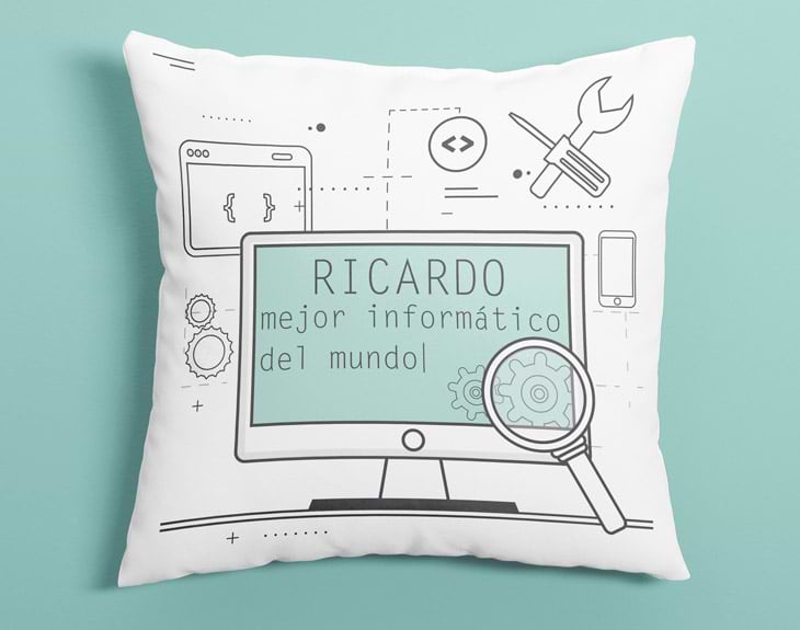 ¿Tu hijo/a ha decidido estudiar Ingeniería Informática y quieres animarle a que sea el mejor? ¿Tienes un amigo/a o familiar que siempre te ayuda con cualquier problema tecnológico y quieres agradecérselo? El mejor detalle que puedes tener con ellos es este cojín personalizado con su nombre. Además, hemos creado este fantástico diseño informático con todo lo que le gustará. Además de poder personalizar el nombre, puedes escoger el modelo para hombre o para mujer: "mejor informático del mundo" o "mejor informática del mundo". Sea para quien sea, este es el perfecto regalo original para que sepa que aprecias su labor. ¡Seguro que le encanta tu gesto y el diseño del cojín! Haz que sus largos días frente al ordenador sean mucho más cómodos con su propio cojín personalizado. O si no, cuando necesite descansar la cabeza de tanta programación, podrá apoyarse en este cojín que le recordará que es el mejor en lo suyo. ¡Hasta puedes añadirle por 4€ más una taza con el mismo diseño! Importante: si eliges la opción que incluye taza, esta será de cerámica.