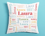 Llena de color tu hogar con el nombre de tu persona favorita. ¿Por qué decidir un solo color para tus accesorios de salón cuando puedes tenerlos todos? Completamente adaptado al estilo de tu hogar, con apenas esfuerzo puedes crear tu propio cojín personalizado con nombre. Así cuando no tengas a esa persona a tu lado, podrás abrazar este cojín con su relleno incluido y ese nombre escrito repetidas veces de varias maneras distintas. No te asustes. Aunque sean muchos nombres, ¡tan solo tendrás que escribir uno! Nuestro intuitivo diseñador se encargará de multiplicar el texto que escribas de todas las formas posibles. Y si alguna no te gusta, puedes editarlas individualmente o de una en una. Con tan solo escribir 20 caracteres desde tu ordenador o tu móvil, ¡ya tendrás listo tu regalo original para el salón o la habitación! Esta vez sí que nadie tendrá uno igual. Cuando estés tumbado en el sofá bien apoyado en este colorido cojín, ¿no te apetecerá un buen café o un té? Acompaña ese momento de relax con una taza personalizada a juego: el mismo diseño, ¡pero puedes personalizarla con cualquier otro texto! Importante: si eliges la opción que incluye taza, esta será de cerámica.