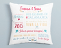 • Cojín personalizado de 40cm x 40cm • Relleno incluido. • Tarjeta recordatoria.