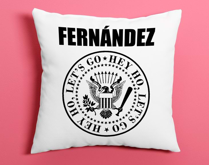 ¿Tienes el rock todo el día en tu cabeza? ¿Las canciones como las de los Ramones están todo el rato en tu mente? Haz que te acompañen también cada vez que te eches una cabezada con este cojín personalizado. ¡Tu nombre aparecerá como el integrante de uno de los más famosos grupos de música de la historia! Dinos tu nombre o el de un amigo y nosotros lo grabamos sobre la funda del cojín. ¡Pero el relleno también va incluido! Además, si necesitas regalarlo a varias personas o tú también quieres un regalo original con este chulísimo diseño personalizado, puedes comprar también una taza a juego. ¡Por apenas 4€ euros más! Descansa cómodamente y levántate con la mejor energía rockera cantando la mítica canción "Hey ho, let's go". El águila del punk cuidará de ti en tus sueños mientras te sientes como uno más de los Ramones con este molón cojín personalizado. Importante: si eliges la opción que incluye taza, esta será de cerámica.