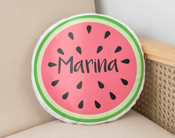 El verano es el momento perfecto para disfrutar. Llegan las vacaciones, el calor, el sol, la playa, la piscina, la fruta rica y bien fresquita... ¡Es la mejor época del año! Por eso, si quieres sorprender a alguien muy especial con un regalo único y con un diseño muy veraniego, este cojín redondo personalizado es perfecto. Podrás elegir la fruta que más te guste y nosotros nos encargamos de poner el diseño en este súper cojín. ¡Es un detallazo! Un cumpleaños, el amigo invisible o cualquier fecha especial en la que tengas que hacer un regalo, no dudes que con este original cojín triunfarás seguro. Si no sabes qué regalar es esa ocasión tan importante, este cojín es perfecto para dejar a cualquier persona sin palabras. Seguro que le encantará descansar sobre él o utilizarlo para decorar cualquier rinconcito de casa. El cojín incluye el relleno y la funda donde irá impreso el diseño. ¡Lo tiene todo! Al personalizar este cojín redondo tendrás que elegir cuál es tu fruta favorita. Primero añade el producto al carrito y entra en el área de personalización. Elige qué fruta te gusta más (sandía, naranja, kiwi, limón) y escribe el nombre que quieras. ¡Tendrás el mejor cojín del mundo! Diámetro del cojín: 19 cm.