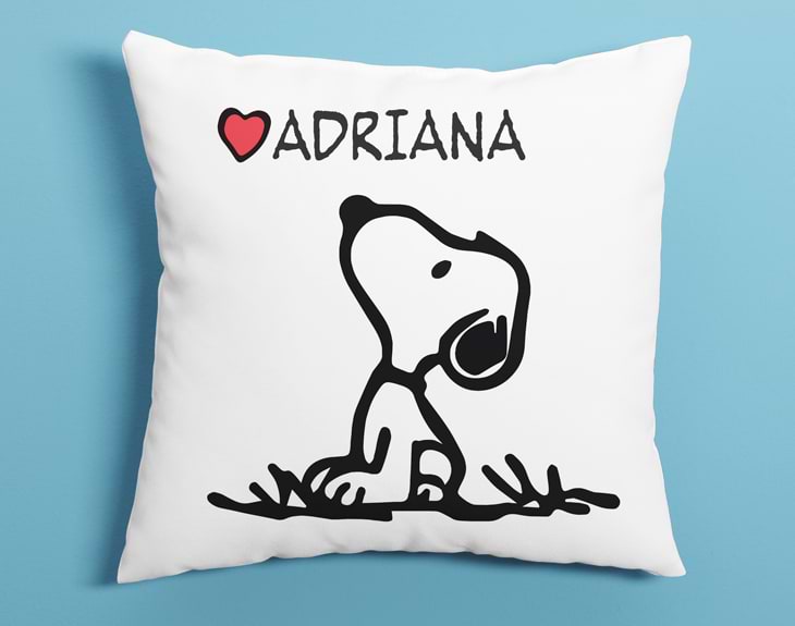 Si tú también eres un fan de Snoopy o conoces a una persona que lo sea, este cojín personalizado es algo que no puede faltar en su sofá. Es ideal para acompañarte en tus siestas o cuando quieres relajarte un ratito en el sofá, ya sea para ver la tele o para disfrutar de la compañía de tus amigos o familiares. ¡Todos los invitados querrán un cojín igual! Además, este cojín también te lo puedes llevar de viaje para dormir durante el trayecto en tren o en avión. Sin duda, es un regalo original y práctico, a cualquiera le encantará tener su propio cojín personalizado. Es ideal para regalar en una ocasión especial o simplemente para expresar tu cariño a tus seres queridos. ¿Cómo se personaliza este cojín? Es muy sencillo. Primero, añades el producto al carrito y entras al área de personalización. Por último, escribes el nombre que tú quieras y terminas la compra. Nosotros nos encargamos de que quede un cojín monísimo con el dibujo de Snoopy.