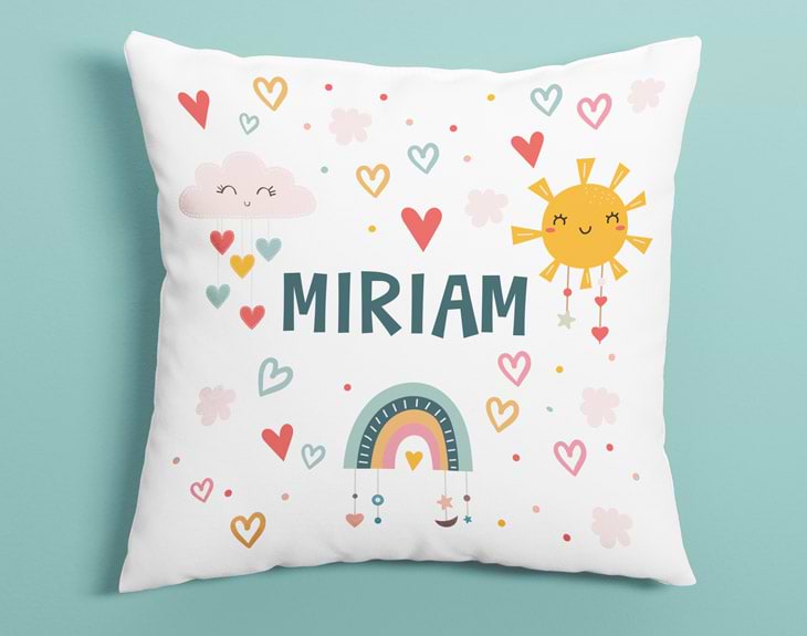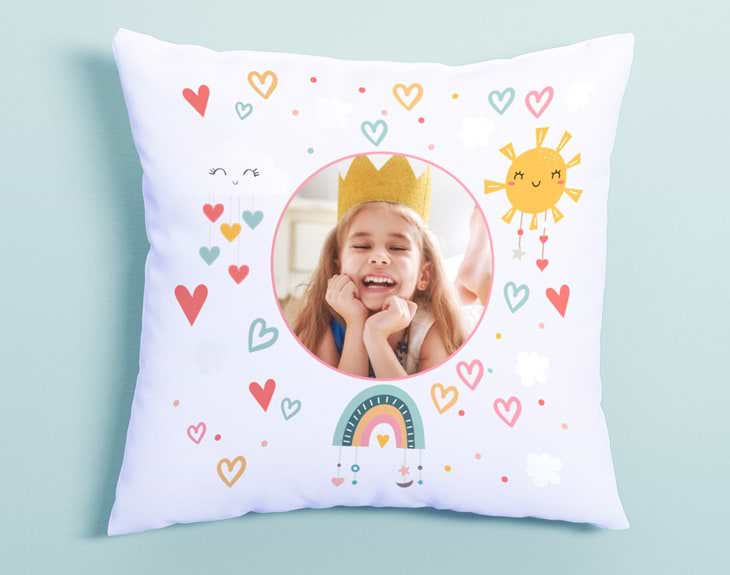 Los niños pueden estar todo el día sin parar y nunca se cansan. De aquí para allá todo el día y siempre con una energía envidiable. ¡Quién fuera ellos! Pero a pesar de que parece que sus pilas nunca se agotan, también necesitan descansar de vez en cuando para estar a tope al día siguiente. Por eso, este cojín personalizado les encantará porque está totalmente pensado y personalizado para ellos. Con un diseño de lo más adorable, seguro que les hace mucha ilusión tener su propio cojín y además poder decorar su habitación con él. ¡Es un regalo que seguro que les encanta! Este original cojín puede convertirse en el regalo perfecto para sorprender a los niños el día de su cumpleaños o en alguna celebración especial. Es una opción diferente si no sabes que regalarle al peque de la casa, porque seguro que le hace mucha ilusión recibir un cojín con su nombre o una foto suya rodeada de nubes, soles y corazones. No habrá momento en el no quiera usar este cojín para dormir, jugar a la consola, leer o apoyar su cabecita o su espalda en cualquier momento. ¡Sirve para todo! Pero antes de que termines de leer, recuerda que tienes que personalizar este cojín para que sea el más especial del mundo. Podrás elegir cómo quieres personalizarlo porque tienes dos opciones: añadir solo un nombre o solo una foto. ¡Tú decides qué opción te gusta más! A los pequeños de la casa les encantará tener su propio cojín sobre el que descansar siempre que lo necesiten. ¡Será su cojín favorito! Pero si quieres, puedes elegir el pack que incluye cojín y taza personalizados. Podrás llevarte ambos productos y personalizarlos como tú quieras, con el mismo nombre y que sea un regalo para el mismo niño o niña o con nombres diferentes y así poder hacer dos regalos. ¡Tú decides! Medidas: 40 x 40 cm.