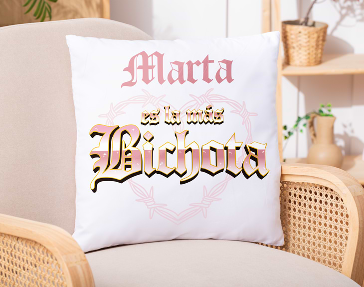 Todas alguna vez hemos pasado por una 'tusa', le hemos dicho a nuestro ex que 'TQG' o hemos querido dar una vueltecita por 'Provenza'. Si todas estas palabras o canciones te suenan, enhorabuena, has pasado el fan test de Karol G. Si la cantante colombiana es tu artista favorita y también te sientes la más bichota del mundo, este cojín personalizado está hecho para ti. Una verdadera bichota no merece descansar en otro cojín que no sea este. Karol G ha marcado a toda una generación con sus canciones y sus letras, por eso este original cojín será el mejor regalo del mundo para cualquier fan de la cantante. Podrás escuchar tus canciones favoritas mientras descansas sobre este cómodo cojín después de un duro día de trabajo. ¡Así deben sentirse las auténticas bichotas! Para personalizar este cojín, solo tienes que entrar en el área de personalización, elegir qué diseño te gusta más y completarlo con tu nombre o el de la persona a la que le quieras regalar este súper cojín. Sin duda, será el mejor regalo del mundo. ¡Solo para bichotas!