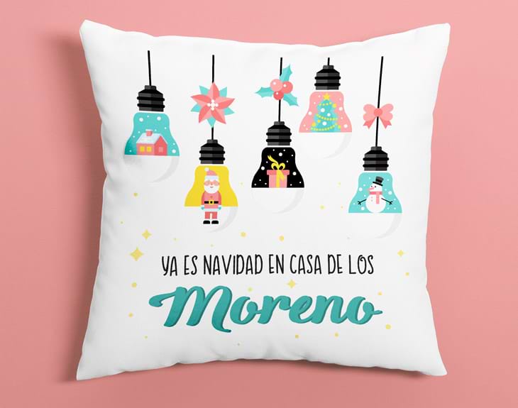 Después de un largo año para todos llega esta etapa tan bonita que es La Navidad. Volver a reunirnos con la gente que tanto hemos echado de menos, los abrazos, las sonrisas, los regalos... Para apreciar estos momentos tan especiales qué mejor manera de tener un detalle con tu familia que regalarles este cojín personalizado. Con este cojín cualquiera que visite tu casa sabrá que ha llegado la Navidad y de manera muy original, con el nombre de tu familia incluido. Suena genial, ¿no? Para conseguirlo sólo tienes que escribir en el formulario el nombre que quieres que aparezca en el cojín, y nosotros haremos el resto. Importante: si eliges una opción que incluya taza, esta será de cerámica.