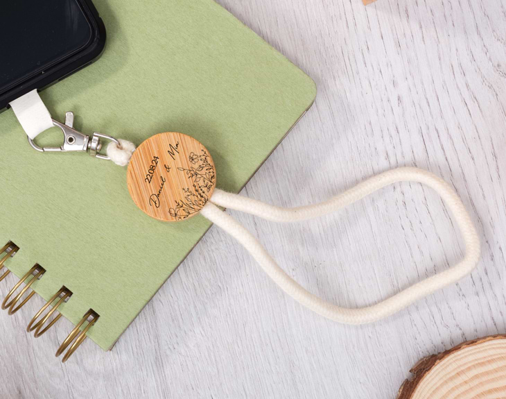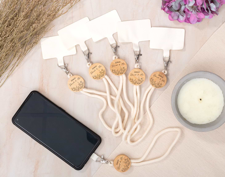 ¡El amor hay que celebrarlo por todo lo alto! Por eso, si se acerca el día de tu boda , seguro que habrás invitado a todos tus seres queridos, familiares y amigos. Si quieres sorprender a los invitados de la ceremonia con un regalo original, nuestro colgador de móvil personalizado con diseño "Florecitas Silvestres" es ideal para esa ocasión. Este detalle es una forma de demostrar a tus seres queridos lo mucho que te alegras de que te acompañen en los mejores momentos de tu vida. Además, este colgador de madera es muy práctico, evitará que el móvil se caiga al suelo. Y lo mejor es que es personalizable, podrás escribir vuestros nombres junto con el día de la boda. ¡Quedará genial! Personalizar este colgado de móviles es muy sencillo. El primer paso a seguir consiste en añadir el producto al carrito y entrar al área de personalización, Una vez ahí, ya puedes escribir vuestros nombres junto con la fecha y nosotros nos encargamos de todo lo demás. Pronto estará perfecto y listo para regalar. ¡Será un original regalo para bodas! Medidas: 20 cm de largo.