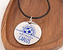 • Colgante de zamak personalizado (30 mm). • Cadena de metal o cordón de cuero negro. • Tarjeta Recordatoria.