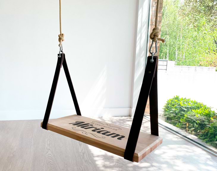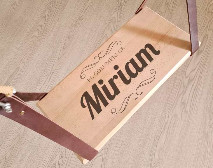Las tardes en casa pueden llegar a ser de lo más aburridas. Cuando no tienes ningún plan o todos tus amigos están de vacaciones los días se nos pueden hacer larguísimos, sin ninguna serie que ver o libro que leer. Sin embargo, esos días pueden ser perfectos para disfrutar de ti mismo, relajándote en un ambiente cómodo como es el de tu hogar. ¿Te imaginas estar en el porche de tu casa, balanceándote tranquilamente mientras te tomas algo fresquito? ¡Es una imagen de lo más bucólica! Es por eso que el columpio personalizado con nombre es el producto ideal para tu casa. Es perfecto para esos días de lluvia en los que estás solo en casa y para los planes más divertidos con los amigos... ¡Y con tu nombre en él! Este producto incluye el columpio de madera con tiras de cuero y cuerdas. De esta manera podrás ponerlo en cualquier rincón de la casa, ya sea en el porche, en el salón o en la habitación de los más pequeños. El columpio tiene unas medidas de 60 centímetros de largo por 28 de ancho. Además, las cuerdas están hechas de vacuno natural, lo que las hacen lo suficientemente fuertes para que nadie se caiga del columpio. ¡Perfecta para cualquier miembro de la casa! Finalmente, el columpio de madera para interior con cuerdas podrá estar personalizado con tu nombre o el de esa persona a la que le encanta columpiarse. Solo tendrás que añadir el producto al carrito y escribirlo en la caja de respuesta. ¡Podrás ver como queda el diseño de este regalo original! Importante: Las maderas tienen vetas y estas quedan reflejadas en la imagen. Importante: Producto recomendado para su uso en interiores. Se entrega montado con las cuerdas atadas a las tiras. Medidas madera: 60x28x4cm Ancho tiras de cuero: 3.5cm Material de las tiras: vacuno natural.