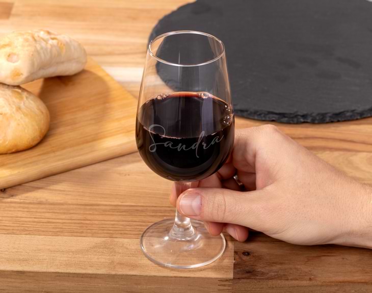Esta copa catavinos personalizada es mucho más que un simple detalle. Es una forma de hacer que cada cata, cada brindis y cada sorbo tengan un toque único y personal. Perfecta como regalo para amantes del vino, para sorprender a esa persona que no se pierde una cata o que siempre tiene una botella especial guardada. También es ideal como detalle original para bodas, cenas entre amigos, eventos de vino o incluso como regalo de empresa. Pero lo mejor de todo es que puedes personalizarla con un nombre, una fecha o una frase corta. Con esta copa de vino grabada convertirás cualquier momento en algo memorable. Porque brindar con una copa que lleva tu nombre es otro nivel. Ya sea para un enólogo en potencia, para tu padre que sabe más de Rioja que nadie, o para ti, que simplemente disfrutas de un buen vino al final del día, esta copa es el regalo perfecto. Y personalizarla es muy sencillo. Primero, añade la cantidad de copas que quieras al carrito y luego accede al área de personalización. Allí podrás escribir el nombre o texto que quieras, y nosotros nos encargaremos de lo demás. Pronto tendrás un regalo original, perfecto para cualquier ocasión. Medidas aproximadas: Diámetro superior: 5 cm Diámetro inferior: 6 cm Altura: 16 cm Capacidad: 22 cl
