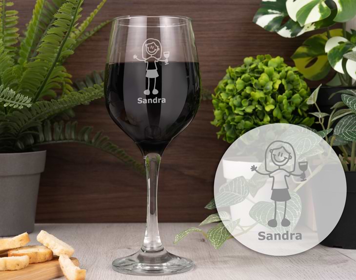 Deja sin palabras a esa persona que ama el vino con esta copa grabada tan divertida. ¡Puedes personalizarla con el personaje de nuestra familia hobbies con el que más se identifique! ¿Le encanta hacer deporte, la jardinería o la fotografía?¡Tenemos un montón de muñecos haciendo diferentes actividades para que puedas encontrar el que mejor le represente! Será un detalle genial para dejarle sin palabras en su cumpleaños, en un aniversario o en cualquier otra fecha señalada. ¿Te imaginas la cara que pondrá al ver su nombre en una copa así de especial?¡Le encantará! Además, seguro que en cuanto lo vea abre esa botella de vino que guardaba para ocasiones especiales...¡Así podrá estrenarla de la mejor manera! Medidas aproximadas: Diámetro: 6,5cm en la parte superior y 8cm en la parte inferior. Alto: 21cm Capacidad: 372ml