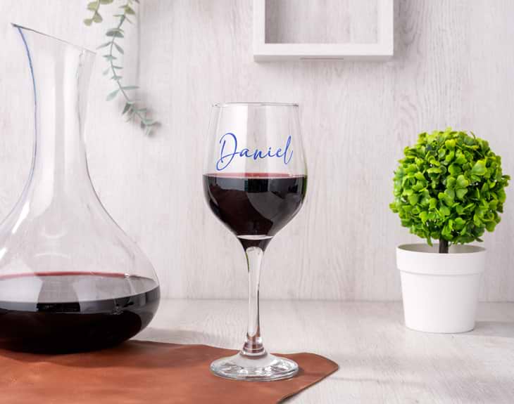 ¡Siempre hay un motivo por el que brindar! Ya sea que quedes con tu familia para una reunión, una boda... o con tus amigos para una fiesta o un campo, la bebida especial nunca puede faltar. Queremos evitar toda distracción que os impida disfrutar a tope, como las típicas confusiones de bebidas cuando sois tantos. Para ello, cada uno podréis disfrutar cómodamente de las mejores botellas sobre vuestra propia copa de vino personalizada con nombre o texto. Podéis ser originales: ya sea vuestros nombres o el mote de cada uno, podéis tener cualquier texto sobre la copa de vino impresa en color. ¡Con un bonito tono rojo y en vertical para que se vea lo mejor posible! Añade el producto al carrito y, antes de realizar el pago, podrás editar la copa y ver una previsualización del diseño. En vez de llevártela de una en una, ¡compra de dos en dos, y os saldrá aún más barato! Casi 400 mililitros de cualquier bebida y el texto que quieras son la combinación perfecta para crear en apenas un minuto el mejor regalo original para fiestas y eventos. Si quieres hacer un pedido grande con ellas, no dudes en contactarnos y te ayudaremos encantados. Importante: esta copa no se puede meter en el lavavajillas. Medidas aproximadas: Diámetro: 6,5cm en la parte superior y 8cm en la parte inferior. Alto: 21cm Capacidad: 372ml
