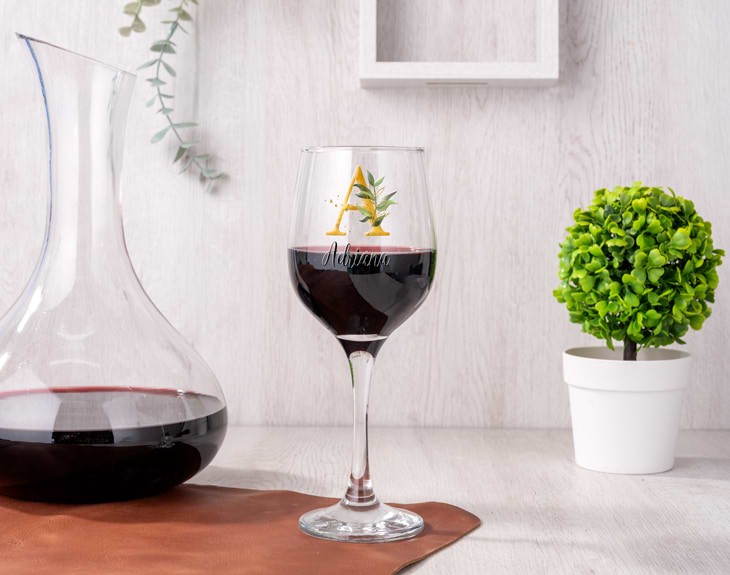 La elegancia tiene que estar en todos los puntos de nuestra vida. Cada vez que salimos a la compra, cuando quedamos con nuestras amistades, o cada día que acudimos al gimnasio. La finura y el hecho de estar siempre preparado ante cualquier situación es algo imprescindible... ¡Y más cuando estás en una celebración elegante y lujosa! Y es que todos nos hemos presentado en fiestas que han sido de lo más finas. Grandes vestidos que brillan en la sala, personas serias con ganas de charla, un catering en el que hay toda clases de comidas... ¿Qué es lo único que falta? Efectivamente... ¡Una copa de vino personalizada tan elegante como esta! Para esta clase de celebraciones contamos con una copa de vino impresa en color lujosa y chic como esta, protagonizada por nuestras letras botánicas. ¿Qué tienes que hacer para conseguir un regalo original como este? Escoge la inicial botánica de ese/a afortunado/a y añádela en el diseñador. Nosotros nos encargaremos de plasmarla en el cristal. ¡Ese amigo tan presumido no podrá aguantarse las ganas de gritar cuando vea este detallazo! Importante: esta copa no se puede meter en el lavavajillas. Medidas aproximadas: Diámetro: 6,5cm en la parte superior y 8cm en la parte inferior. Alto: 21cm Capacidad: 372ml