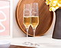 • Dos copas de bohemia para cava grabadas (210 ml). • Tarjeta Recordatoria.